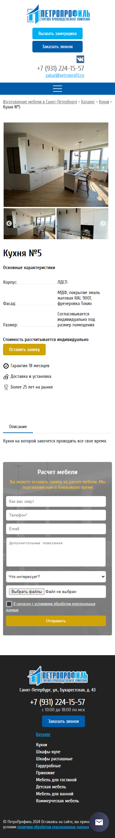 Корпоративный сайт для мебельной компании "Петропрофиль-Мебель" из Санкт-Петербурга, является каталогом производимой ими мебели с возможностью приема заявок на изготовление.