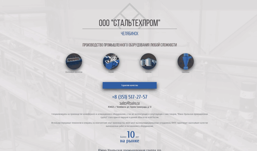 Лендинг промышленной компании SUIG